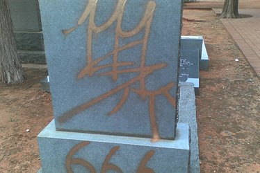 In addition, various tombstones were spray-painted with Satanic signs and graffiti, including the number ‘666’. The word “aher” was spray-painted onto the foundation stone.